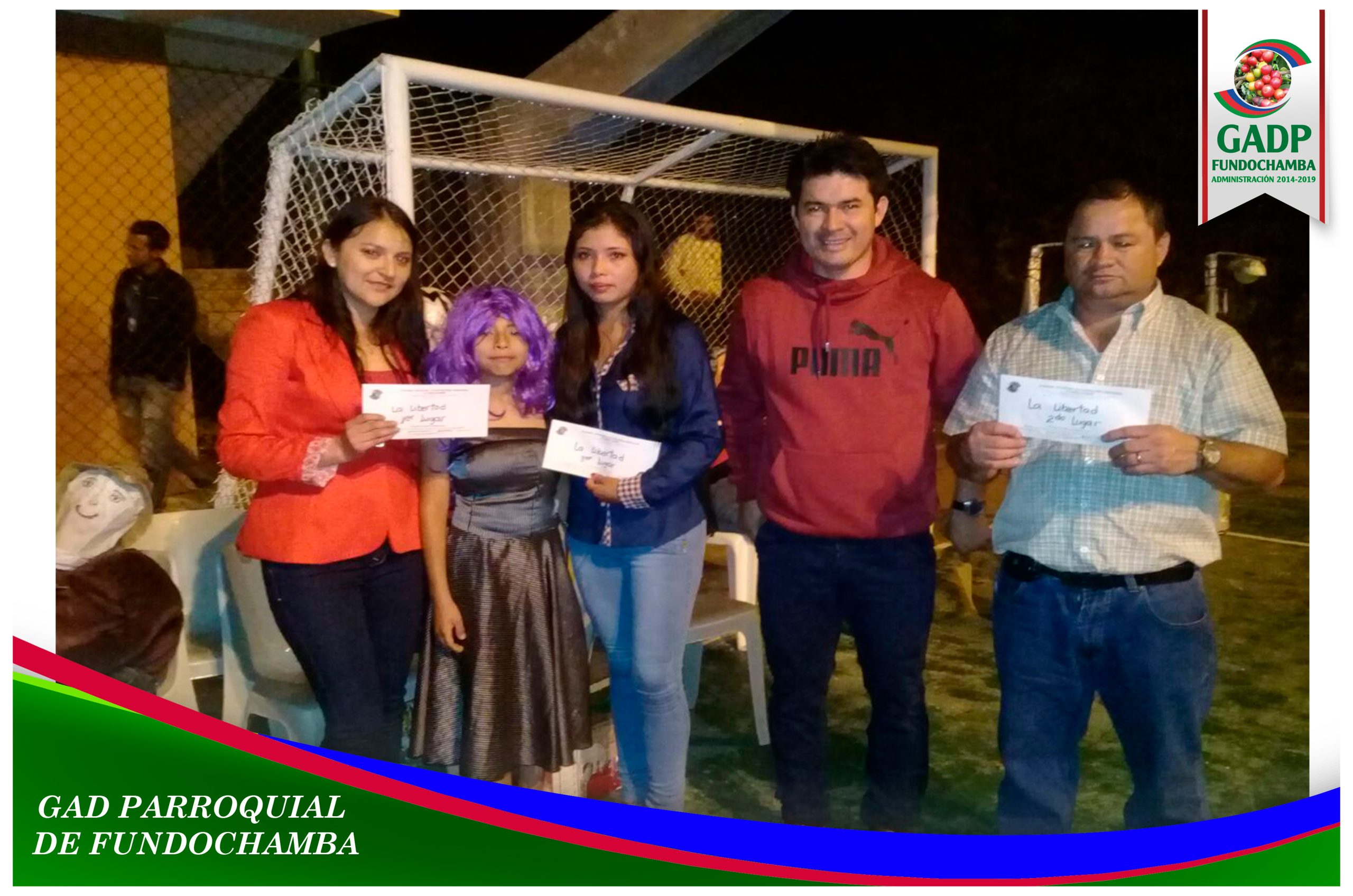 El pasado 31 de diciembre del 2017 el GAD Parroquial de Fundochamba con la finalidad de incentivar la creatividad de la ciudadanía y mantener viva la tradición, se realizó el concurso de años viejos 2017, tanto en la cabecera parroquial como en el barrio La Libertad. Nuestra inmensa gratitud por su sacrificio, su esfuerzo y su buena voluntad para con este concurso, porque gracias a vuestro empeño pudimos disfrutar de toda esta creatividad tan diversa en cada uno de los monigotes.