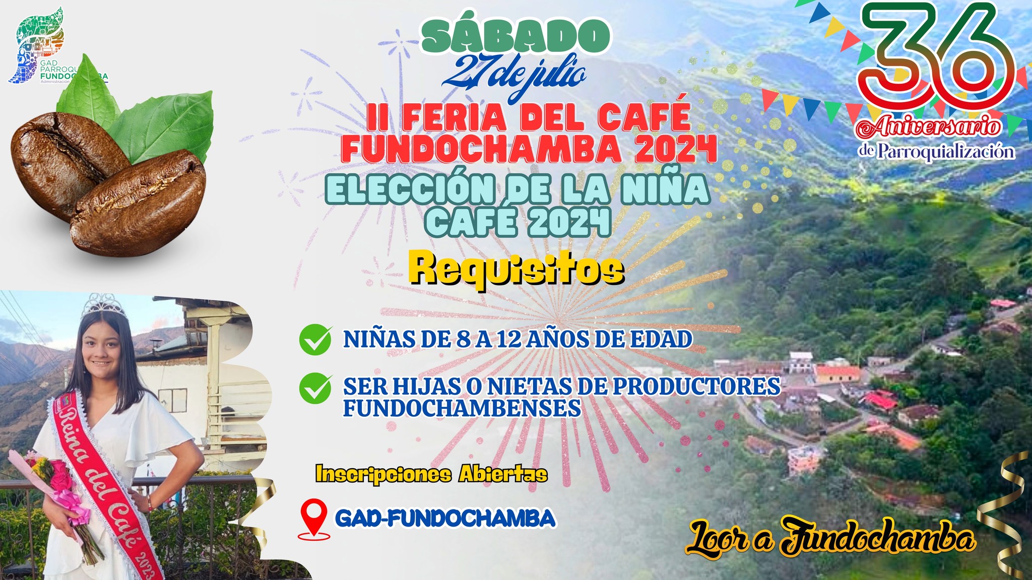 En el marco de las festividades de Fundochamba, tenemos el honor de invitar a todas las niñas, hijas o nietas de productores fundochambenses, a participar en la Elección de la Niña Café 2024.