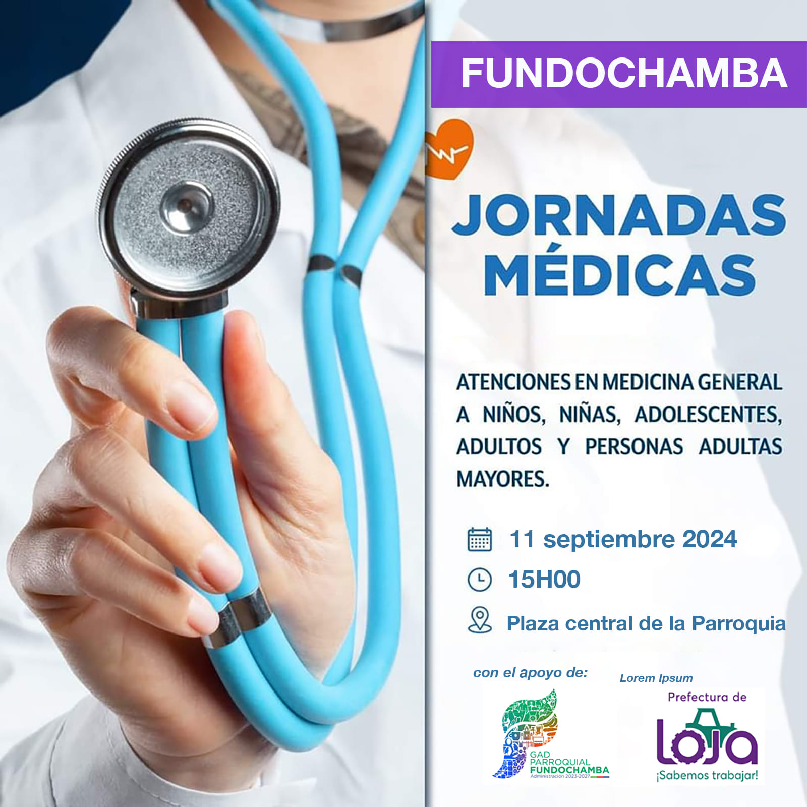 Hoy jornadas médicas en la parroquia Fundochamba, gracias al apoyo de la prefectura, se atenderá en medicina general a toda la ciudadanía a partir de las 15H00 en la plaza central de la parroquia.