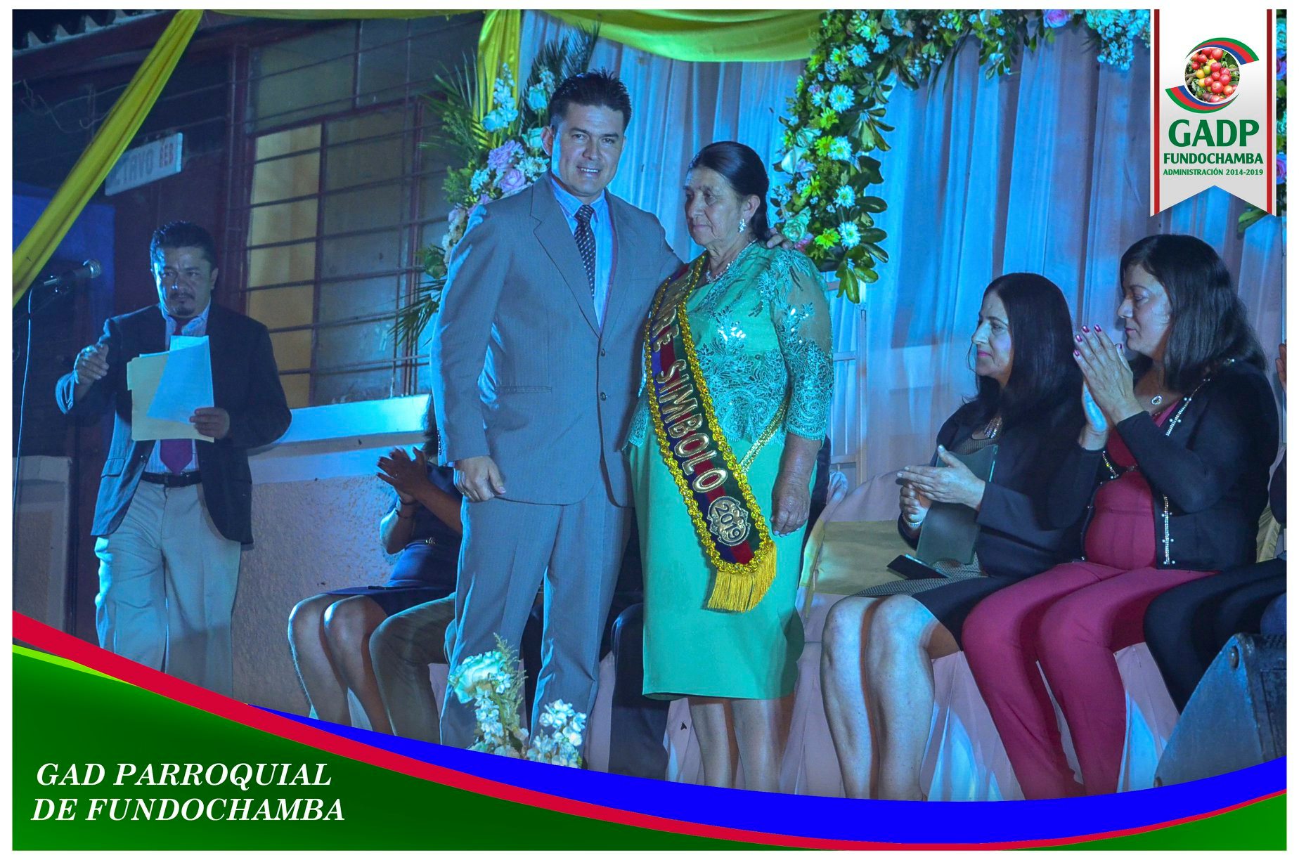 Mediante un programa emotivo, el día de ayer, se llevo a cabo el acto de proclamación de la Madre Símbolo de la Parroquia Fundochamba del año 2019, dignidad que recayó en la señora Isabel Abad. El amor y cariño por su familia, la buena voluntad y donaire de gente hicieron que las autoridades de Fundochamba la nombre como madre símbolo, este evento también permitió que se pueda realizar un justo homenaje a todas las madrecitas de la parroquia quienes lo han dado todo por ver mejores días para sus familias. Dúval Cueva, Presidente del Gad Parroquial dió las palabras de bienvenida el cual se mostró muy contento y resalto las cualidades de Isabel Abad, así mismo realizó la colocación de la banda, el cual felicitó a la familia de la homenajeada por tan maravilloso ser. Para amenizar la noche maravillosa para quienes concurrieron a las instalaciones del Club Atlético Fundochamba, se contó con la presentación de YO ME LLAMO Camilo Sesto, quien enamoro a las madrecitas con cada una de sus interpretaciones. Ing Dúval Cueva Villalta Presidente del GAD Parroquial de Fundochamba